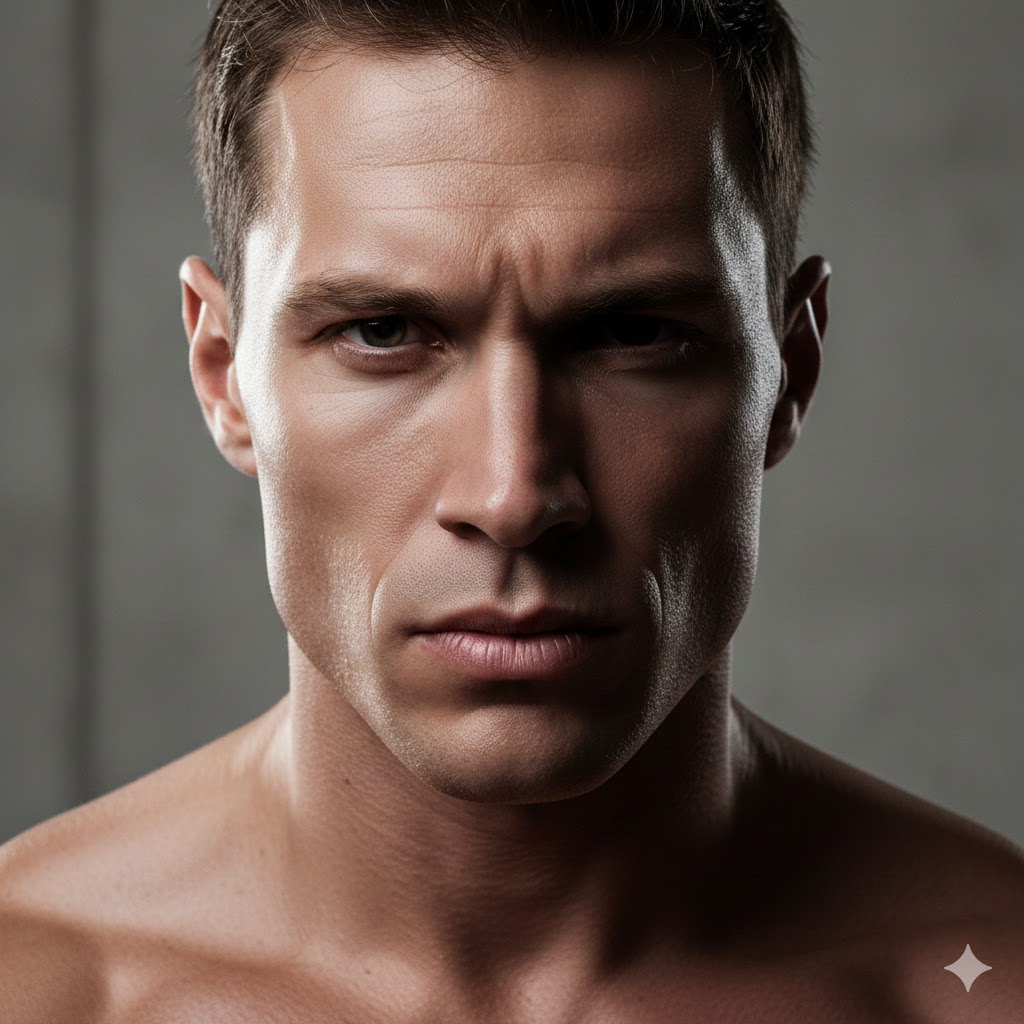 Enhance facial muscle definition with bold directional lighting, clean natural skin texture, sharp contours, fitness-model aesthetic, and professional ultra-realistic 4K output.