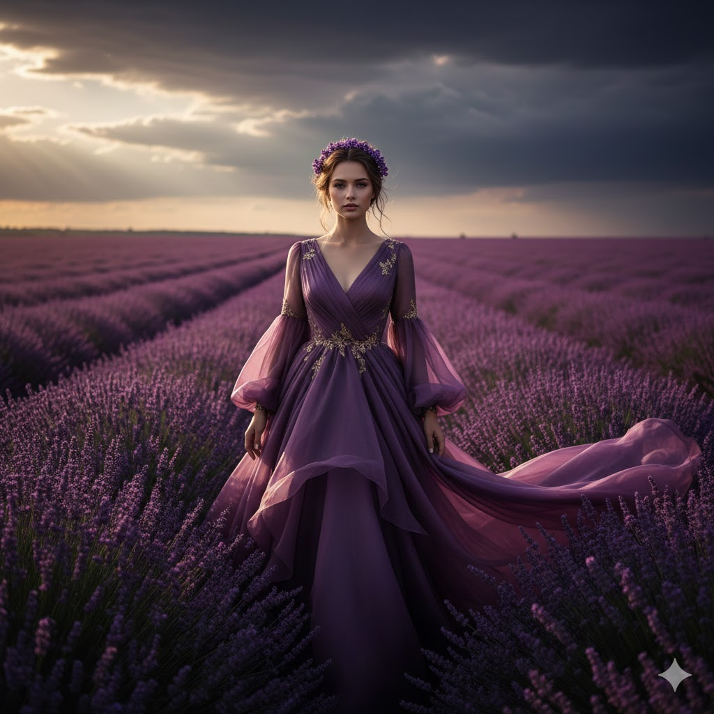 Lavender tones evoke peace, softness, romance, and elegance, creating images that feel calm and story-driven.