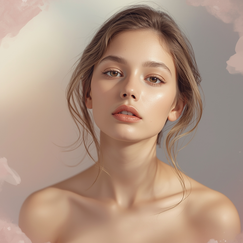 Create a soft aesthetic girl portrait with gentle lighting, smooth skin texture, pastel color tones, dreamy background, elegant expression, natural beauty enhancement, HD clarity.